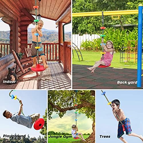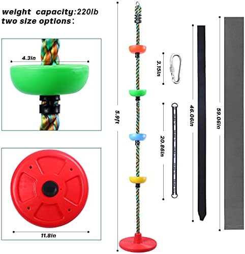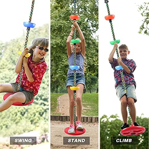 🌈STURDY & DURABLE – Our disc climbing rope is safe and durable, Made of high-quality PE material that is tough to break, It could use as a tree climbing rope, Climbing rope ladder, or a rope swing. 🌈KIDS DISC SWING – This climbing rope with a platform and swing seat is a perfect gift for your kids to play outdoor, It can also encourage your kid’s balance, Coordination, Imagination and confidence! 🌈EASY TO INSTALL – First, Wrap the strap and tree protector around a tree or other stable place. Second, Connect the two carabiners to the strap and disc swing respectively through the metal swivel to complete the installation. 🌈CREATIVE DESIGN – The package including 1 Climbing Rope with Disc Seat, 4 Colorful Foot Holder Platforms for climbing, 1 Hanging Strap, And 1 Lockable Carabiner. 🌈FUN TO PLAY – Suitable for backyard, Playground ninja sets, Outdoor/indoor play, Parties, Competition games, Fitness, Schools, And more – Perfect for children, Grandkids, Kid’s birthday gifts, Toys for girls and boys.