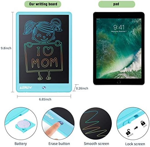 Interesting drawing board: This drawing board is like an endless sheet of paper, bringing you fun writing and drawing experience. You can paint, write, doodle, take notes, and even serve it as a memo pad in the office or a message board at home Soft light & eye protection: ERUW’s writing tablet adopts the latest LCD flexible screen that is safe and radiation-free. The 10-inch large screen allows kids to use their creativity while developing their imagination! Mothers don’t have to worry that children spend long periods of time in front of a television or computer, which could harm their eyes One-key erase & lock screen: Our writing tablet can be erased more than 1,000,000 times that is 10X higher than other similar products on the market. With the ultra-powerful battery, this paperless device can last for 12 months! You don’t worry that the images can’t be erased. Just press the button and the image will disappear without a trace Healthy & Eco-friendly: It is a healthy and eco-friendly drawing board, enabling your kids or family to keep away from chemical pigments and chalk dust as these harmful chemicals could irritate the skin and lungs. This LCD writing pad is paperless and reusable that can help you save resources Perfect gift for kids: It must be an attractive gift for kids, which not only stimulates their creativity, but also promotes parent-child interaction. Suitable for various occasions, including school office, birthday, Thanksgiving, Easter, Christmas, Valentine’s Day, etc