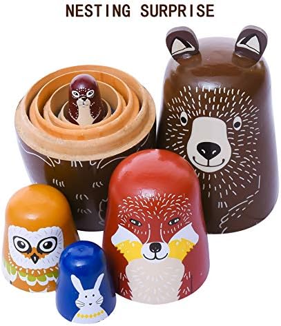 Price: (as of – Details) Product Description 5 Piece Russian Nesting Dolls Set 5 cute animal pattern dolls Bear, fox, owl, rabbit, raccoon, sizes go from large to teeny tiny. Beautiful artwork and excellent craftsmanship! Nesting Surprise Explore layer by layer, you’ll find the tiny baby a real surprise! Put one together while containing a