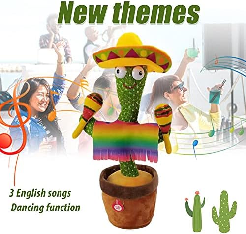 🌻 【NOVEL INTERACTIVE CACTUS TOYS】Dancing Cactus Plush Toys that can dance, sing, and talk are the best birthday gifts for children.Dancing cactus toy have Cheerful music and dancing are very suitable for creating a pleasant atmosphere and suitable for parties. 🌾【PERSONALIZED CACTUS TOY】This Dancing Cactus Plush Toys can dance to the rhythm and can sing 120 songs. Dancing cactus toy can attract the baby’s attention when singing and dancing. It is a small toy for early education. 🌴【INTELLIGENT CACTUS TOY】Dancing cactus toy can sing 120 songs, dance to the rhythm and shine. At the same time, dancing cactus toy has the function of one-click recording to learn Chinese, with a lovely tone, learning to speak, active atmosphere, and happiness with you. 🌱 【GOOD-LOOKING AND PLAYABLE CACTUS TOYS】Dancing Cactus Plush Toys use knitted fabric, cute in shape, and furry in appearance. There is a hidden switch outside the flower pot. Just install the battery and turn on the switch to bring you happiness. 🌿【TOYS SUITABLE FOR ALL KINDS OF PEOPLE】Dancing Cactus Plush Toys Accompanied by singing and humorous dance, awaken the children’s attention and bring them joy! At the same time, adults can also decompress and be happy, and the elderly can relieve boredom and pass the time.