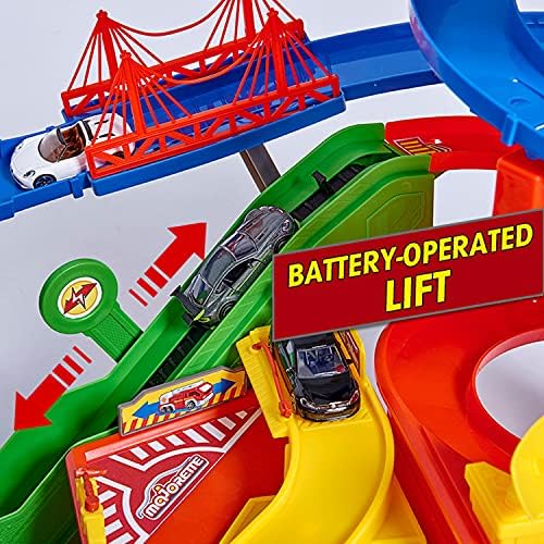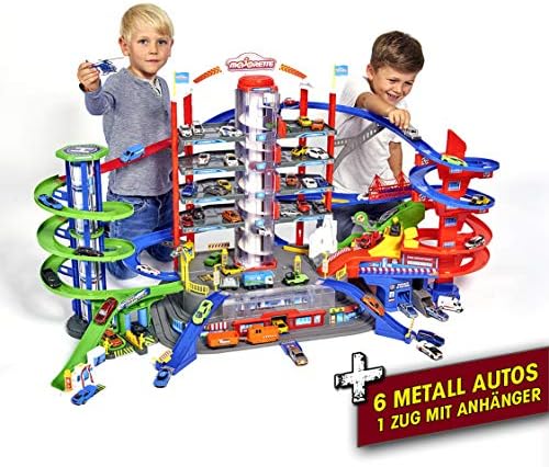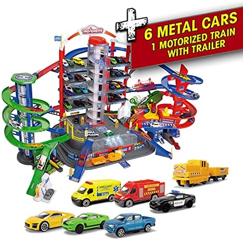 Price: (as of – Details) Parking building play world on seven floors2 motorized lifts6 light and sound effect systemsIncludes 6 die-cast toy cars with freewheel function: Audi R8 Coupe, Ford Mustang Police, Ford Mustang GT, Toyota Hilux, Iveco Ambulance, Iveco Fire BrigadeIncluding battery-powered train with trailer