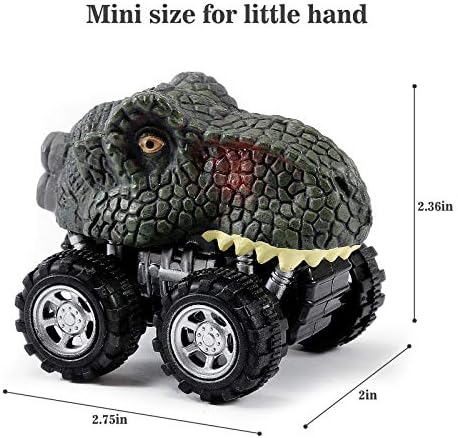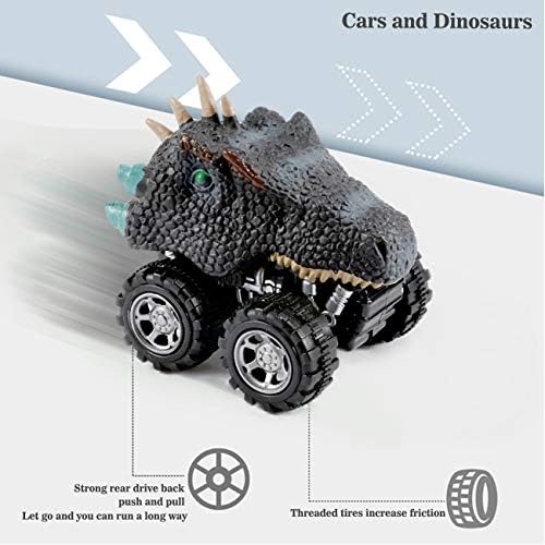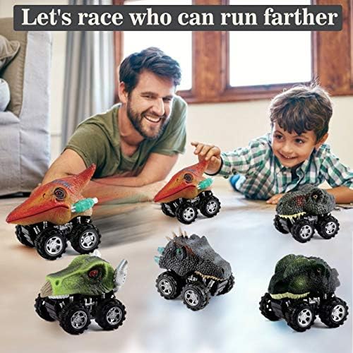 【Dinosaur Pull Back Cars】Just pull it back and let it go; These toys are designed with the idea of combining racing trucks and dinosaurs that preschool boys like, and all kids will love them. 【Safe Dino Cars Toys For Kids】This pull back dinosaur monster truck are designed with durable non-toxic soft plastic and are no sharp and mini size best for toddler’s hands, which are 100% friendly and safe for kids. 【Perfect Size And High Quality】 Each dino car is 2.75 inch, it is Perfect mini dinosaur car toddler boy toys designed for 3-7 year olds kid’s small hands to hold and push, The little wheels are hard to break off and tire traction strong, You can take them outside wherever you go. 【Dinosaur Car Race】Have a great time with kids and let them race trex cars. The car is not moving very fast and the child can control how far it runs, which prevents children from falling over. 【Great Gift for Boys】Exquisite packaging, realistic appearance, and fun play will definitely catch the eye of children, this is a birthday and Christmas gift for children.