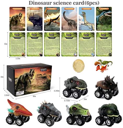 Price: (as of – Details) Product Description 6 Dinosaur & Cars in Your Bag Cool Dinosaurs Toys For 2 3 4 5 6 7 Year Olds Boys FAQ: Q: How many pullback dinosaur car toys in just one packge?A: You will get: 1. 6 different dinosaurs truck, a Gold Jurassic Commemorative Coinand. 2. A pile
