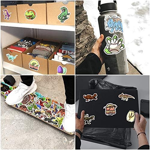 Dinosaur Stickers for Boys with Nice Size-2 to 3.5 inch vinyl stickers.Same as the photos and no duplicates.The dinosaur stickers are easy to use and don’t leave a residue when take them off. 50 Pcs Great Quality Dinosaur Stickers for Kids-PVC vinyl stickers material.Safe and Non-toxic,Adhesive and Durable,Waterproof and Washable,Removable and Reusable,vibrant and clear not blurry. Dinosaur Stickers for Water Bottles-Perfect for Halloween,Thanksgiving,Christmas,New Years Eve,Baby Shower party favors decorations.Funny for art crafts with family. Dinosaur Vinyl Stickers-Best Halloween,Thanksgiving,Christmas,New Years Eve Party Gifts for All Ages-Used as birthday gifts,candies bag fillers,add-on Christmas stockings gifts,game,classroom,kids training rewards,seal for gift cards and envelopes. Make Your Dinosaur Stuffs Unique-Great variety for decorating water bottle,hydroflasks,laptop,bullet journal,computer,phone case,scrapbook,folders,skateboard,scooter,cooler,tablet,charge,luggage,helmet,bumper,bike,motorcycle,truck,car,fridge,desk,mirror,window,storage box,home and furniture ect.