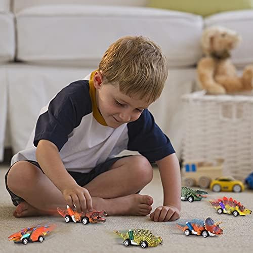 Price: (as of – Details) What package includes?Package includes 6 different designs dinosaur toys:T-Rex, Triceratops, Stegosaurus, Ankylosaur, Pterosaur, and Raptor; Kids friendly:These Dinosaur monster trucks are made up of high quality and durable non-toxic plastic. How it works?No batteries required, pull back and let go, suitable for playing indoors and outdoors, great toys for 5