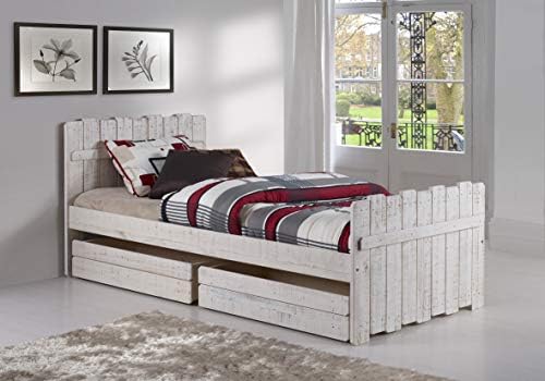 Price: (as of – Details) This Donco Kids Twin Tree House Bed with Dual Underbed Drawers, Rustic Sand measures 82″ length x 42″ width x 36″ height. 100% Solid Pine WoodExceeds or Meets ASTM/CPSC StandardsFits any standard size Twin mattressRustic Sand FinishTools and hardware included81.5in x 42.125in x 36in