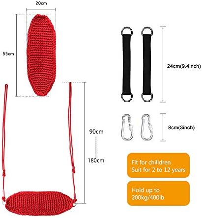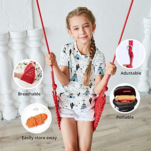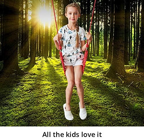 π§[Safe and Comfortable]The kids swing is made of professional hand-woven nylon rope, very sturdy and durable, enjoyable for kids and adults. Soft and comfortable to sit on, It can be used indoors and outdoors. π§‘[Weight]: The Heavy Duty Swing Seat is rated to hold up to 440 lbs(200KG),swing seats for kids,from 2 to 12 years old.You can adjustable the rope length 90cm/35.43inch~180cm/70.86inch freely according to your actual situation, β[Light and Portable]The swing set seat is very compact, you can bring it out with you on the weekend or holidays and give kids lots of fun anywhere.And itβs easy to connect to the tree or swing set. π[Convenient Hand Washing]This swing seat can be washed by hands with little laundry detergent to keep clean. Don’t recommend machine washing. π[Great for Indoor & Outdoor Play] Can be used for tree, indoor, playground, backyard, enjoy playtime with friends and family β Perfect gift for kids, grandchildren, Birthday, Christmas etc.