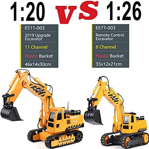 Price: (as of – Details) Product Description Exclusive 11 Channel Functions Size: 1/20 Scale Frequency: 2.4GHz Motor:3 Separate motors on arms Battery Type:4.8v 800mAH Function: Dig,Drive&Rotate,Auto-demonstration Playing Time: 20-30 mins Control Distance: up to 100 Ft DOUBLE E 2019 Upgrade Remote Control Excavator – 1:20 Construction Toy Tractor for Kids Age 3+ 11 channel-full function