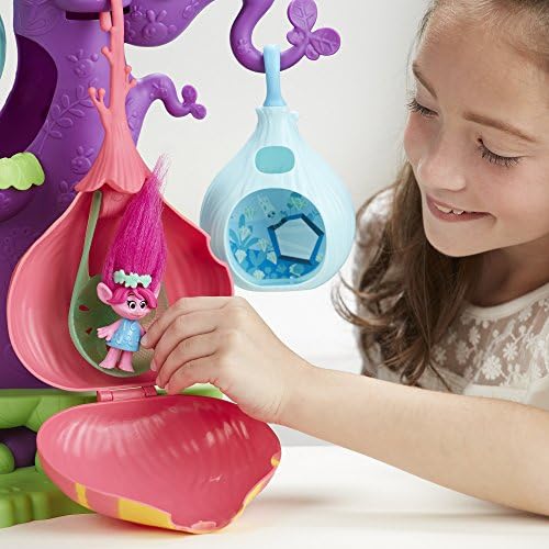 DreamWorks Trolls Copyright 2017 DreamWorks Animation LLC. All Rights Reserved. Hasbro and all related terms are trademarks of Hasbro. Playset is over 16 inches tall Features DreamWorks Trolls Poppy figure Zipline, nooks for hiding, and slide Interchangeable pods to customize tree Includes playset, figure, 4 pods, 3 mushrooms, bug clip, zip line, tiara, and instructions