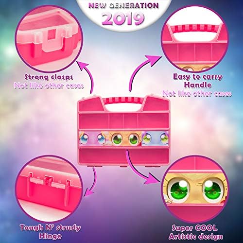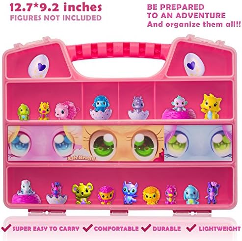 Durable Figures CASE Organizer Box | Fits Up to 50 Mini Colleggtibles Eggs Toys Figurines, Miniature Characters Or Tiny Figure| Large Compartments | Pink Carrying Case Box with Handle by Ash Brand