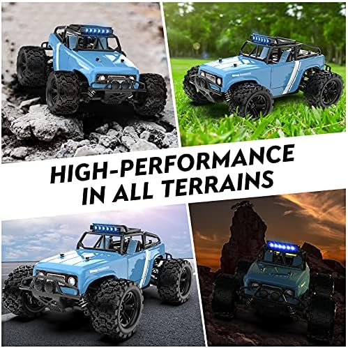 Price: (as of – Details) Product Description 4WD High Speed Off-Road Monster Truck Blue LED Headlight This rc car is equipped with blue LED lights on the roof. You even can play with your friends in dismal surroundings. Wearable Rubber Tires Better elasticity, excellent wearability and grip, which bring the racing car a freely ride