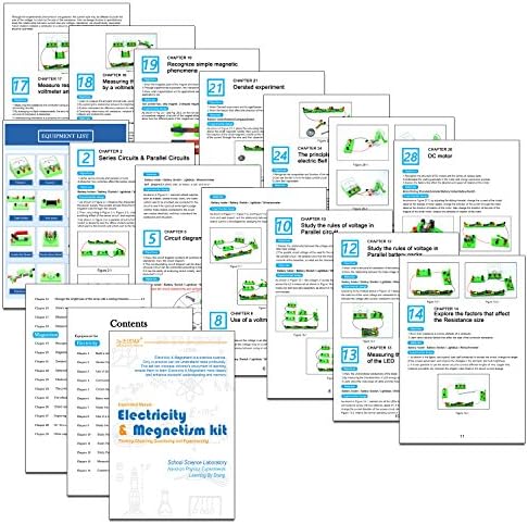 Learn basic Electricity and Magnetism experiments through full-color manuals, understand the basic principles, and help children learn, think and explore. The basic Electricity and Magnetism experiments kit includes everything that you need to get started,provides a hands-on opportunity for students in grades 7-11 to build simple electrical and magnetic models Includes 56 items for Electricity,21 items for Magnetism,2 pcs repair tool,Color page manual,All in the storage bag.(Notice:Batteries Not Included.Need 3 AA Batteries to work.) This Electricity and Magnetism Experiment STEM kit can build many projects::Series Circuits,Parallel Circuits,Fruit Battery,Measure unknown resistor with Ohm’s law,Oersted Experiment,Electromagnet,Amper’s Force Investigation,Electric Bell Making and Hand Crank Generator Please feel free to contact us if you have new ideas for EUDAX Product, we will provide Best After-sales service