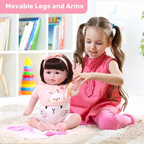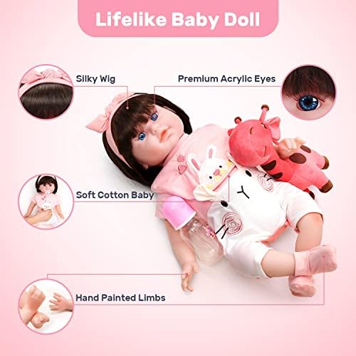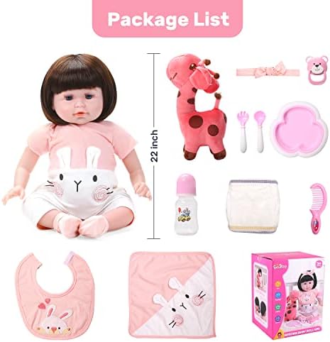 Lifelike Reborn dolls: She has a cute mouth, realistic eyelashes, hand-drawn eyebrows, fingers, and toes. She has the same body lines as a person, and she looks really life like, from her delicate face to her feet. Reborn baby dolls are so real and beautiful, when you come into contact with them, you will definitely fall in love with them. Real Baby Feel: The reborn babies are 22 inch. The reborn baby has a soft vinyl head and legs, and 3/4 soft vinyl arms. The baby’s body is made of soft cotton, so you can’t bathe her. Her skin has wrinkle which makes her skin feels like a baby’s skin. The Hands and feet details make her come to life. Safety Materials : The reborn doll is made of safe and non-toxic materials. Conforms to the safety requirements of ASTM F963 and EN71 for ages 3+ kids. So the kids like to hold and sleep with her, safe for your kids. Value Combination: This cute and life like baby doll is designed with a gift box. We gifted it very intimately Nursing bottle, Magnetic pacifier, Feeding kit, Gift Box, Deer doll, comb, diaper, clothes set as pictured. If you need to change clothes yourself, it is recommended to buy a newborn size of 0-3 months. If you have any questions, please contact us in time. How to take care of a reborn baby: When you change her clothes, please be gentle and careful, just like your own child. Avoid using ink and markers near the reborn doll, as they may stain and be permanently damaged. Avoid direct sunlight and extremely high temperatures, and dust her regularly. If you have any questions about caring for a newborn baby, just consult us and we will answer them for you.