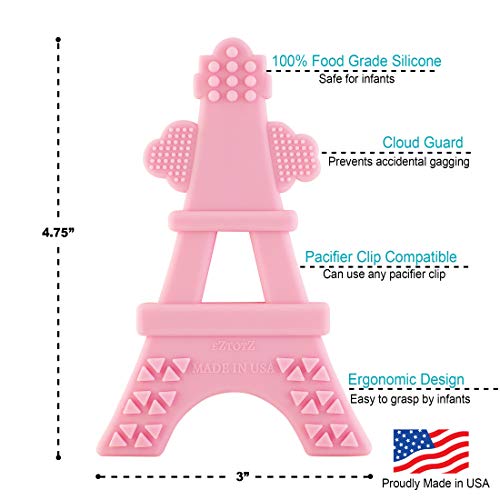 MULTIPLE TEXTURES – The eZtotZ Tower Teether has multiple teething textures to make sure your baby is kept happy while teether 100% SOFT SILICONE – We make our teethers out of 100% Food Grade Silicone. CUTE AND FUNCTIONAL – Modeled after the Eiffel Tower, our teether is such a cute baby accessory and is easy for babies to hold. It also features an area for pacifier clips to easily attach SATISFACTION GUARANTEED – eZtotZ is a small family business and we strive to keep 100% of our customers happy. If for any reason your are unhappy with your teether or have an issue, contact us and we will make it right