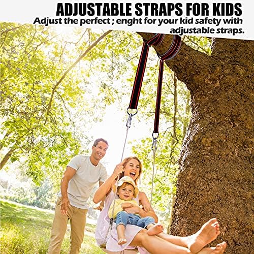 【VALUABLE SWING STRAPS KIT】New version kids swing set accessories has 2 swing tree straps, 2 heavy duty screw lock carabiners, 2 tree protectors & 1 carrying bag. Pack them into a hand-size bag, bring it to anywhere, enjoy anyevery, easy to install. Not afraid of cold winter heat, not afraid of sharp object damage. This is your dream swing straps. 【SAFE & DURABLE TREE SWING HANGING KIT】FLY2SKY apply upgrade thicker and double hanging strap, load 2800LBS, which can withstand bad weathers. Well made tree swing hanging kits with upgrade screw lock carabiners to aviod falling out. We hope you can enjoy happy time with your children using FLY2SKY high quality tree swing belt for years to come. 【CREAT A HAPPY SWING HOURS】Few things can bring you back to the good childhood summer days like a swing! Take your family outside and enjoy in the backyard play. Unleash kids’ energy instead of focusing your children on their phones. Release stress from work and don’t let yourself be under pressure. Kids smile naturally with the swing up and down. 【SUITABLE FOR VARIOUS SWING】 Hanger swing belt work perfectly with classic tree swings, hammocks, baby outdoor swing, tire swing, saucer swing, tree branch, spinner and disc swing. Also suitable for courtyard, toddlers playing, porch, hanging chair, baby stroller. A huge surprise will bring you Infinite joy in outdoor play and indoor leisure. 【PORTABLE & ECO FRIENDLY &FAST SET UP】Swing tree straps unlike hanging rope or chains straps will not cause rubbing burns nor damage the tree, trellis, pergola, wooden or metal beam. kids will be swinging away in no time with a simple install, no drilling, screws required. Carry bag included, light and portable for those park, camping, or hiking days
