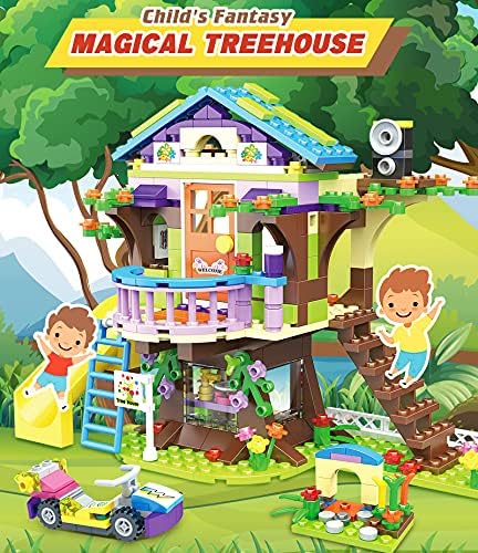 🏡【Magical Treehouse for Every Kid】For a child, there’s nothing more magical than a treehouse. Our creative building brick was designed for children ages 6 and up. As it will let them create their very own unique creations, complete with treehouse & 3 buildings, 2 cars, slide, folding ladder, balcony, chair, desk and even courtyard and numerous other structures. Kids will be busy for hours putting this magical building together, playtime gets more creative and more enjoyable. 🏡【Let Your Child’s Imagination Run Wild】Featuring a new and unique design and shape, this is a toy set that is fit for different kid’s abilities. It features a 547 pieces colored set that offers hours of creative fun. The whole set is perfect for boosting the child’s inspiration, recreation, and creativity. It has passed the certification of ASTM and hence it is safe for your kid’s health. Now, kids get innovative and creative thinking stimulated by the operation of the toy at hand. 🏡【IMAGINATIVE ROLE PLAY lets children explore scenarios and experiences from their world and apply them through play. Kids will love building a treehouse where they can experience roleplay fun & creative adventures inside a fairytale treehouse. Imagine that they climb into a tree house, open a book, point to a picture, and then magically transported to that place. Pretty spectacular, right? Children can enjoy hours of creative fun in a group with friends. 🏡【Creative Gift Ideas】Our toy building sets set is the ultimate gift for your kid as well as your friend who loves to spend their time building things. This kid’s building blocks set comes in a reusable portable storage box. This is a smart selection for families who travel frequently and are always on the lookout for new ways to keep the kids entertained while on the go. 🏡【No-Hassle Satisfaction Service】We design every toy to the highest quality standards and we offer 100% satisfactory lifetime customer service and a 12-month guarantee to ensure the enjoyment of your purchase, pls contact us directly if you have any problems with the blocks, we’ll provide you a satisfying solution. We promise you will be happy with your purchase, and your kids will love it!