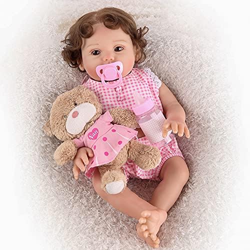 ❤The realistic reborn girl baby doll with full vinyl silicone, waterproof body (approx.2.7 lb). Approx. 48cm from head to toe, approach to the size of a real baby and can fit into (0-3 month) baby clothes. ❤Lifelike hand painted details, hand-applied eyelashes, skin wrinkle and rosy cheeks. The warm and humid lips look natural and soft that you cannot help but want to kiss. Delicate long wig for collections reborn baby, you can styled lightly ❤Great Choice for Kids Christmas Xmas gift, Children birthday surprise gifts, Preschool education, Family activity, Daily role playing, Nuturing play and Collectors collection. Your children will never feel lonely and scared at night with this sweet newborn baby Toddler. Also a good choice for granma’s accompany. ❤SAFETY CERTIFICATION – Conforms or exceed the safety requirements of ASTM F963 and EN71 for ages 3+, which is safe to your children. ❤Package includes(With gift box): Reborn doll*1, Clothes*1, Cute Bear toy *1, Pacifier *1, Baby Bottle *1, Birth certificate *1.