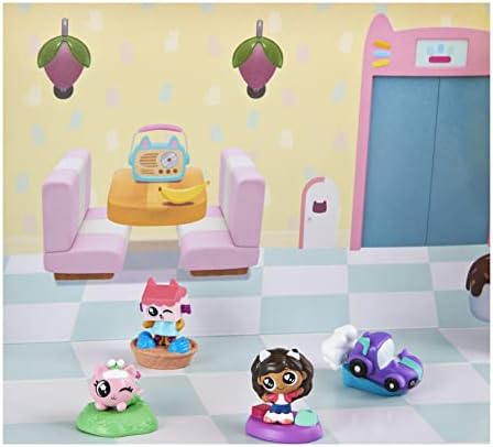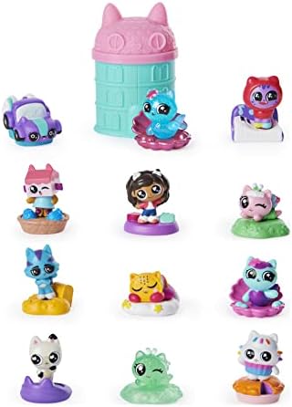 Instantly add all of the Gabby’s Dollhouse Mini Figures to your collection with the Meow-mazing Mini Figures Set! This exclusive set includes 12 mini collectible figures, including Kitty Fairy with a special finish and MerCat with an exclusive finish you won’t find anywhere else! One figure also comes hidden in a reusable 3-inch blind box Dollhouse capsule – who will you find? The Meow-mazing Mini Figures Set’s box opens into a play space with a backdrop of Cakey Cat’s kitchen, perfect for playing out your miniature adventures. Inside, find your super cute figures and their themed accessory stands. Discover characters and stands like Gabby and her Dollhouse Deliveries, Cakey Cat on a delicious-looking pie, MerCat in a clam shell and more! Each figure pegs into its accessory stand and you can easily mix and match characters and stands for even more ways to play. Use the enclosed play space and Dollhouse capsule to play out your adventures or store a figure and stand inside the container until you’re ready to play again. For one last surprise, scan the QR code on the bottom of the Dollhouse capsule to unlock a special reward in the free Gabby’s Dollhouse App (available on iOS and Android, including the Amazon Fire Tablet). With the whole collection of Gabby’s Dollhouse Mini Figures included, this set is the perfect gift for kids and fans of the show. Bring the magic of Gabby’s Dollhouse home with the exclusive Meow-mazing Mini Figures Set! 12 MINI TOY FIGURES: This set is the only place to get all 12 Gabby’s Dollhouse Mini Figures! It includes Kitty Fairy with a special finish and an exclusive MerCat you won’t find anywhere else! ACCESSORY STANDS AND REUSABLE CAPSULE: Connect your figures to their accessory stands or mix and match for more ways to play! There’s also a surprise figure and stand in the reusable Dollhouse capsule! ENCLOSED PLAY SPACE: The box doubles as a fun play space! Cakey Cat’s kitchen backdrop is the perfect setting for your mini pretend play adventures! After playing, store your capsule and figures in the box. UNLOCK A SPECIAL REWARD: Scan the QR code on the bottom of the Dollhouse capsule to unlock an exclusive reward in the free Gabby’s Dollhouse App (on iOS and Android, including the Amazon Fire Tablet)! TOYS FOR GIRLS AND BOYS AGES 3 AND UP: Gabby’s dollhouse dolls, doll house furniture, stuffed animals and kids toys are great gifts for birthdays and your holiday toy list 2021, for kids ages 3 and up. Includes: 12 Figures, 12 Accessory Stands, 1 Dollhouse Capsule, 1 Paperboard Play Mat Covered by the Spin Master Care Commitment. See below for full details