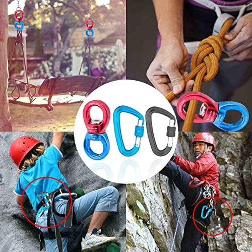 ✔【High-Quality Materials】:Made of 7075 aviation aluminum (forged aluminum magnesium alloys), the breaking strength of swing swivel is up to 35KN( 7868 lbs), which is greater than 30KN of others. It will not oxidize and corrode easily and have a longer life & smooth appearance with delicate anodized finished.All pass CE and EN certification. ✔【PRODUCT SIZE】:This swing hanger is portable, compact (3.2 inches * 1.4 inches) and lightweight (2.65 ounces only), the carabiners for Web Tree Swing size 3.2 inches * 1.4 inches,which is very convenient for you to carry when going outdoor or camping. You will find it so easy & reassured to use it. ✔【Fits For Various Hanging & Rigging】:No friction & no noise! Stainless steel ball bearings allow the rotor to easily maintain any high speed rotation. It is widely used in rescue, rock climbing, swing setting, hammocks, aerial yoga and so onClimbing & swinging become more joyful ! ♚【PERFECT CARABINERS】:Snap Hook Set Of Two.Random Color.Opens and closes smoothly as the spring- loaded gate makes it easy to attach important items to it.Allow quick connect/dis-connect of ropes, chains and straps.Great Children’s Birthday Gift. ✔【100% Satisfaction Guarantee】:The swing spinner has passed EN & CE certification. 30-day money-back guarantee for any reason.We strive to provide each customer with the highest standard of customer service and ensure you have a pleasant shopping experience.