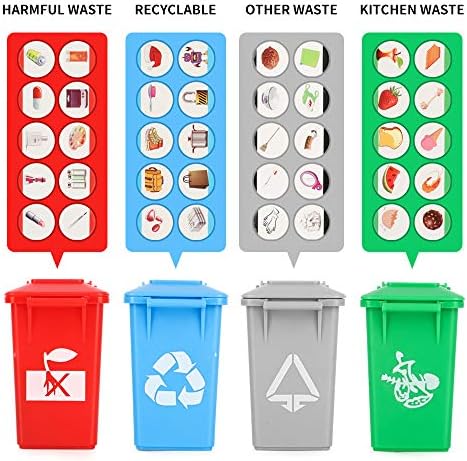 · Kids Educational Toys:Friction powered toy truck playset allows for imaginative play while teaching children how to sort and discard items such as paper scraps, bottles etc., into the correct trash bins with illustrated flash cards.