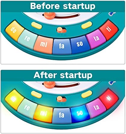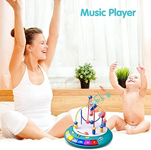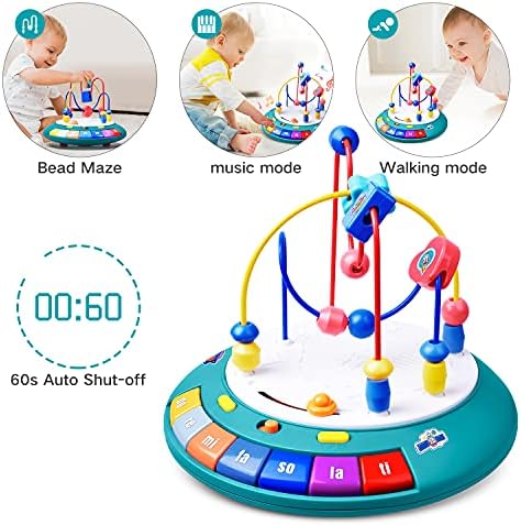 Crawling Toy for Toddlers: Press the yellow button on the left to enter the mobile mode. The UFO will move on its own like a sweeper, accompanied by music and lights to attract the child’s attention, let the child crawl and chase it. Help toddlers to exercise their muscles and balance control training, which is conducive to children’s learning to walk. The toddlers toys can automatic change direction when bumped into an obstacle. Music Mode: Musical toys will play music song(volume is adjustable), There are three types of music-Music, song, Baby laugh. Use the yellow button on the right to select the music type, press the piano key to select the music. When the music is playing, the piano key buttons will randomly have soft lighting. When you swipe the top button to the right, The UFO will emit special sound effects. Performance Mode: Reach this mode by pressing the yellow button on the right. There are 7 piano key on one side of the toy( do re mi fa so la ti), when these buttons is pressed, the sound corresponding to the note will be emitted. Help children familiarize themselves with notes and play simple piano music. Let the child become a little musician. Bead Maze: The sensory toy has 2 smooth irregular tracks and 1 semicircular track, 15 multi-shape beads, Bead Maze baby toy has been designed to help children 12 months and above develop sensory skills, fine motor skills, hand-eye coordination and round out the hands-on experience. It also has UFO theme stickers, let children decoration the appearance of toys by themselves. Safe Material: Use non-toxic ABS sturdy material to ensure product safety, durable and drop resistant. Smooth rounded edges and burr-free, easy to clean. The beads on the track will not fall, so Therefore, there will be no choking caused by the baby eating by mistake.It will automatically shut down when idle to save power. 3 AA batteries required (Not Included).Special learning toys gift for 1 year old boy or girl.