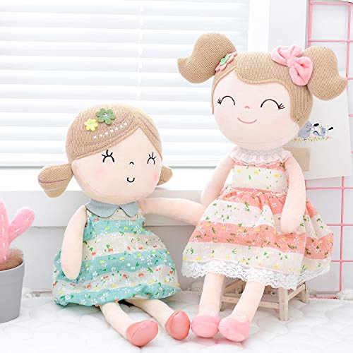 WONDERFUL GIFT – This Plush Baby girls’ doll can also be used as a decorative piece in a child’s nursery. Sweet gift for children’s birthday, christmas, thanksgiving and other memorial day. Perfect dolls for girls , kindergarterns and great for girl’s bedroom decor. HIGH QUALITY – Made of high quality safety environmental soft plush fabric+PP cotton filler. Could be machine washed. It meets and passed CPSIA and CCPSA Standards. It is toxic free and safe for your babies girls. PERFECT TO CARRY OUTSIDE AND INSIDE – The weight of the baby girls doll is only about 8 oz, which is perfect for your girl when play with it ,or hug it to sleep.It can help your babies girls sleep more soundly. The Plush Girls toy is very popular with babies,children,teens girls or even adults. AMAZING APPEARANCE: The size of the plush baby doll for girl is 17 Inches in standing. The doll is wearing pink dress with embroidered flowers, Pink hair decored with bow and flower. It is the dream doll of every little girls.