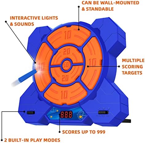2022 Amazing Shooting Target Combination: You can quickly take action a slam shooting party when you get our product. Accessories include target shooting gallery, 1 foam dart toy blaster, 1 dart clip, 12 soft foam darts, 4 shooting targets and 1 introduction. Kids will like the bright colorful design on appearance makes it more suitable for the shooting gun. Our target compatible with Ner blaster. Surprising Electronic Scoring & Auto Reset Target: Get 10-50 points for hitting the target. The higher the score area, the higher the difficulty level, which brings more exciting experience in shooting. The score will be automatically accumulated and displayed on the digital scoreboard. Each air-powered blaster can hold 12 foam balls, fire them into the different scoring pockets to get as many points as possible. Fun for target practice and more challenges. A big hit to the family party. Fun & Save for all ages: The targets are responsive to each hit with the sound of gunshots. Make you exciting and give you an immersive shooting enjoyment. Made of non-toxic, high-quality ABS materials. The very-light-weighted sponge balls do no damage to their targets, even the kids can battle friends with the foam balls. Give as a birthday and holidays (Children’s day, Christmas, Halloween, Thanksgiving & New Year) present for kids age 5, 6, 7, 8, 9, 10, 11+ years old. Enjoy Shooting Game & Improve Shooting Skill: Eyes-harmless sighting device helps training children’s hands-on ability and hand-eye coordination. Electronic target let your child express him or herself with this original fun toy! Help with child development, brainpower, memory, confidence, patience, socially and fosters creativity! Come on, switch on the power button and start your shooting mode! It is a perfect indoor & outdoor toy for kids! Perfect Birthday & Christmas Gift for Kids: Children can play alone to exercise the shooting skills. Or play with parents, it will be a wonderful parent-child Time. Fun digital electronic scoring auto reset shooting target is great for Nerf themed party, family gatherings or outdoor entertainment with parents. Great present for kids age 4, 5, 6, 7, 8, 9, 10 and up. If for any reason you are not completely satisfied with your purchase, please contact us for a replacement or full refund.