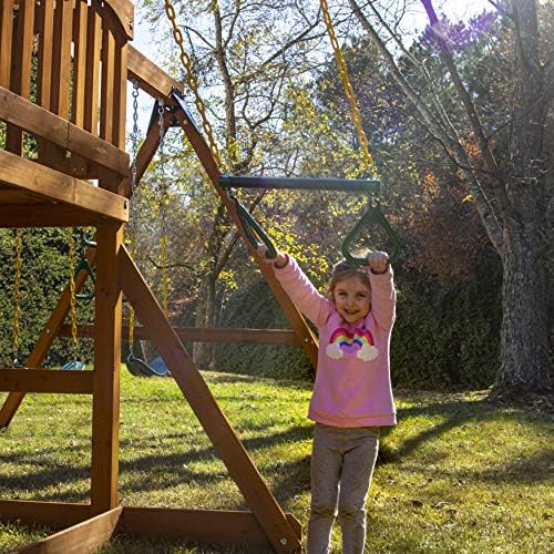 Price: (as of – Details) Climb, slide, and dangle around on the Avalon Treehouse Swing Set with Vinyl Canopy by Gorilla Playsets. This swing set includes a three-position swing beam with two swing belts and a trapeze bar assembly with rings. The separate trapeze arm provides even more acrobatic fun. Other fun activities include the