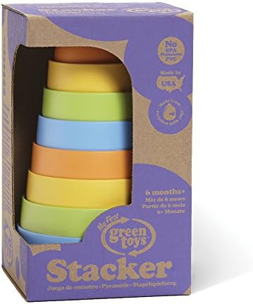 Price: (as of – Details) My First Green Toys Stacker The My First Green Toys Stacker takes a classic toy and makes it safer and more playful. With 8 graduated pieces and no center post, it’s a perfect first stacking toy for babies. Made from food-safe, 100% recycled milk jugs in the USA. No BPA,