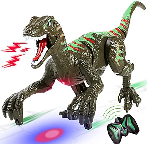 Happitry Remote Control Dinosaurs Toys for Boys Age 4 5 6 7 8 9 10, Big RC Dinosaur Toy Gifts for Kids Birthday Christmas, Electronic Walking Robot Velociraptor with Sound & Light, 2.4G, Rechargeable