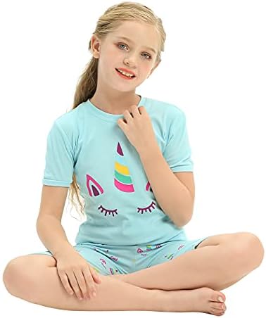 Machine Wash Your little princess will look gorgeous in this girly pajama set for children with adorable unicorn patterns, vibrant colors and cute matching prints on the pants that will make your little girl shine. To ensure your child’s comfort, we make our girls pajamas of premium cotton fabric, to offer your toddler or big girl the ultra-comfortable, breathable and soft sleepwear she needs when bedtime comes. Adorable matching doll pajamas will fit American girl dolls and 18-inch dolls. Your little angel and her toy friend will look stylish and beautiful in the exact same clothes – just like best friends do! Snug fit for your child’s safety: Our sleeper set for girls is designed to provide a snug fit, for safety reasons. Place them in the washing machine or wash them by hand, to keep them fresh like new for a long time. Spoil your daughter with a cute gift: Choose this fantastic pjs set in the right size for a girl 5-10 and surprise your daughter, niece, or granddaughter! Offer your loved girl an irresistible gift at Christmas, on holidays or on her birthday!