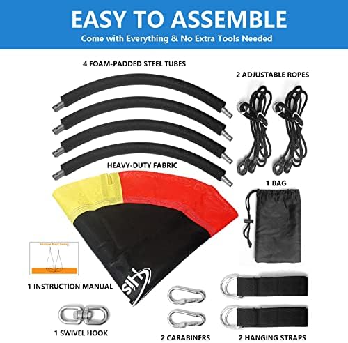 Sturdy Circular Steel Frame- Large 43 ” heavy-duty steel frame with quality Textilene fabric seat fits 3 kids or two adults. It can hold up to 700 pound, safer for children to swing outdoor for a long time. Galvanized steel frame is anti-rust and weather-resistant , padded with foam to ensure your safety, comfort and pleasure. Safe Durable Fabric Seat- We use tightly- woven, well-seamed Textilene fabric to make the swing seat. It is much thicker and stronger than normal oxford fabric, won’t fade, tear, or sag down for years. It is also waterproof, UV-resistant and wear-resistant, suitable for backyard, garden, playground, swing set , tree, playroom, both outdoor activities and indoor use. Adjustable Ropes & Hanging Straps- The saucer swing includes two hanging straps and two 44” -65 ” long 12mm thick ropes , both can be adjusted in length. The multi-strand ropes are made from high quality PE webbing with strong connector rings for secured fastening. The nylon straps are strengthen either to prevent abrasion. The length of our swing can be adjusted from 44” to 91 ” with these ropes and straps. Easy Installation & Secure Connection- Follow the detailed instructions we provide, the swing will be fully assembled in 5 minutes. Instead of bolts and nuts, we use metal clip buttons and strong plastic connectors to connect swing parts , making the assembly simpler and safer. The plastic connectors are integrated at the end of the ropes, no more worries of hardware rusting, falling out or the swing falling apart. 360° Flying Saucer Swivel- Customize your fun with multiple hanging options! You can hang the swing with two points to swing back and forth, or hang with a swivel to allow 360° rotation. You can fly high to have crazy fun, or just swing gently and lie comfortably to relax yourself. You can enjoy the swing alone, or play with your family and friends. It ’s great entertainment for everyone! [Worry-free After Sale] We offer lifetime free replacement parts with no shipping charge. If you are not satisfied with your purchase or want to return, prepaid return label will be provided. Feel free to contact us if you need any return labels, spare parts, or have any questions. Our support team will response within 24 hrs, providing satisfying solutions for you.