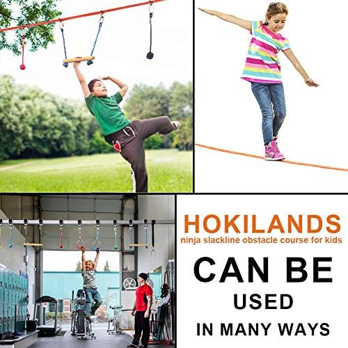 Price: (as of – Details) Product Description Hokilands 45ft Ninja Warrior Obstacle Course with Climbing Rope for Kids Training & Play —create one new entertainment & exercise for kids, adults,teens, and all ages. SAFETY FEATURES We believe in safety first. Our kids ninja warrior obstacle course kit was made of heavy-duty materials, several tiers of