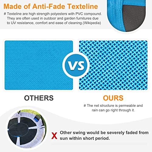 Price: (as of – Details) Product Description ANTI-FADE TEXTELINE: Unlike other swing made of cheap fabric, our 40’’ saucer swing (Upgrade Version) is made of Anti-Fade Texteline. Wikipedia said, “Texteline are high strength polyesters with PVC compound. They are often used in outdoor and garden furnitures due to UV resistance, comfort and ease of cleaning.”