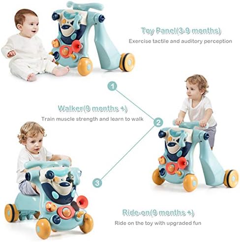 Price: (as of – Details) 【Three Learn-to-Walk Modes】: Combines standing, walking and riding in one baby walker, this 3-in-1 push and pull baby walker will accompany your baby from standing to riding age and effectively stimulate baby’s bone growth and development.【Convertible Ride On Toys】: Different from other normal baby walker, this kids activity center can