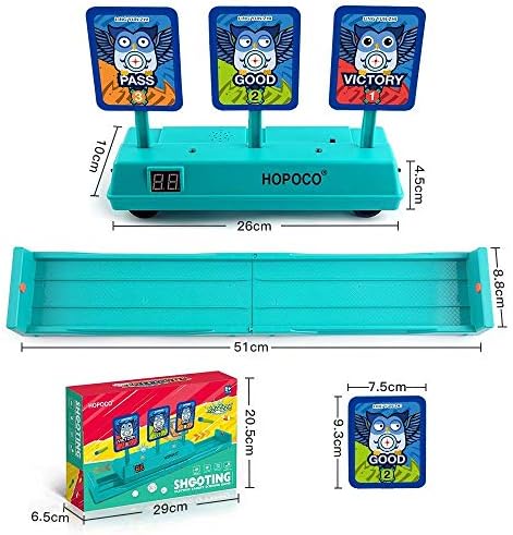 🎯1.Three Movable Shooting Targets Different from other fixed target with 3 target in the current market, Our digital target improved into running digital targets Make your game more passionate and full of firepower 👍2.Two play modes Play at Static Mode: Gameplay of Traditional personal shooting training. Let the players in the primary stage practice shooting at the stationary target. Play at Running Mode: Gameplay of Innovative moving shooting practice. When dynamic mode is activated, the shooting target moves left and right on the course, can exercise Fast paced trick shots and develops hand-eye co-ordination. It can improve children’s mobility and develop hand & eye coordination, bring more fun to boys and girls, children will love it more. 🎵3.Sound&Light Effect realistic sound and LED light.When you hit the target, the light flashes and it is accompanied by a simulated shooting sound and the sound of broken glass Kids will be encouraged to win a higher score and enjoy the real shooting game fun. 💯4.Auto Rebound & Scoring When all the 3 targets are hitted down, they will stand up automatically within a few seconds. Knock down one target get one point, The LCD display will show your score automatically.