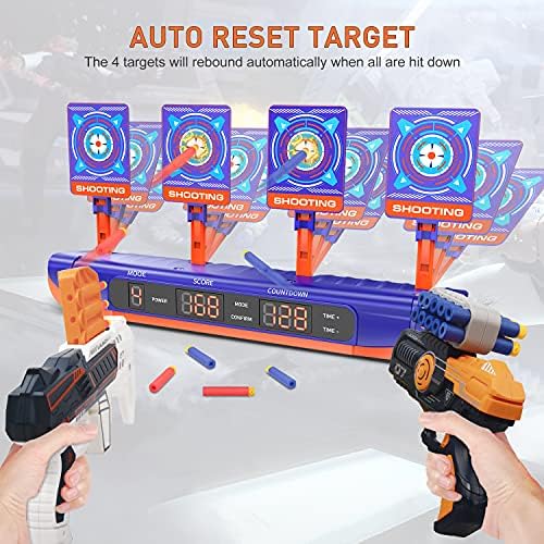 🎯🔫【2 DIFFRERNT BLASTER GUNS TOY FOR BOYS】The light-weight toy guns can shoot out long distance. Shooting gun toy game is a rewarding and interesting experience for young kids to satisfy their curiosity. Kids can play shooting game to exercise their accuracy of shooting by playing the role of a sniper or a policeman. Let your kids excited to start fun gun games with friends! What’s more, these 2 guns toys are also great for teenagers and adults playing. 🎯🔫【NEWEST UPGRADE TOY GUN & SHOOTING TARGET SET】Hot Bee boy toys set includes 4 targets, 20 extra foam darts, 2 gun toys, 1 target shooting gallery, 1 user manuer, 1 screwdriver. Compared with normal digital shooting targets with single score display on Amazon, our upgrade digital shooting gallery is equipped with 3 LCD Screens to display the mode of game, scores & countdown. Digital targets compatible with nerf guns and other soft bullet toy guns. 🎯🔫【SINGLE AND MULTI PLAYER MODES & TIME ADJUSTABLE DESIGN】There are 4 modes for this digital shooting target, if you play alone, you can choose the normal or random SINGLE-PLAYER mode; If you paly with family or partners, you can choose the normal or random MULTI-PLAYER mode.The default time is 120 secs for one round, but you can adjust the time you want, the player can enjoy shooting games. Ideal indoor outdoor shooting toy for 5-10 year old kids. 🧠【EDUCATIONAL TOY】Dart guns shooting practice toy set helps exercise kid’s hands-on ability and hand-eye coordination as well shooting skills. Shooting games can develop kids’ brainpower, memory, confidence, patience, socially and fosters creativity! Accompanied by parents, electronic shooting game also can promotes parent-child communication, not only exercise children’s shooting ability, but also help adults relieve stress. Best shooting toys for age 4-7 8-12 boys. 🎁【BIRTHDAY & CHRISTMAS GIFT FOR KIDS】Electronic shooting targets game is ideal for Birthday Parties, Family Gatherings, or Outdoor Entertainment with partners or parents indoors or outdoor play, making you kids keep away from electronic games. Toys gun target set is an ideal Birthday,Children Day, Christmas and other holiday gifts for 5,6,7,8,9,10,11,12+ years old kids boys girls.