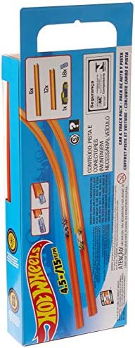 With a whopping 15 feet of track, it’s Hot Wheels custom action like never seen before! One Hot Wheels car is included so the revved up fun starts immediately. Includes 12 pieces of 9-inch track, six pieces of 12-inch track and 18 track connectors. Send your Hot Wheels car blasting along the track and speeding through the straightaways. Or test the speed of other cars in your collection to see which one has what it takes to win the race. Connect to other Hot Wheels track sets (sold separately) for tons of exciting, stunting fun! Each sold separately, subject to availability. Not for use with someHot Wheels vehicles. Ages 4 and older.*Name subject to change.Features:*Cool combination of Hot Wheels track and one car for big customizing fun*Includes 18 track connectors: an assortment of 9-inch track, 12-inch track, and track connectors*Connects with other Hot Wheels track sets (sold separately) for tons of exciting, stunting fun! Cool combination of Hot Wheels track and one car for big customizing fun Includes 18 track connectors: an assortment of 9-inch track, 12-inch track, and track connectors Connects with other Hot Wheels track sets (sold separately) for tons of exciting, stunting fun! Send your Hot Wheels car blasting along the track and speeding through the straightaways A great gift for any Hot Wheels fan skill level: Beginner