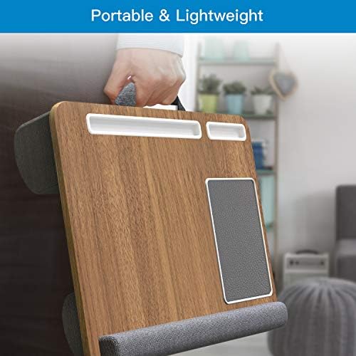 ✨ MULTIFUNCTIONAL LAP DESK – While lying on your bed or sofa or traveling, it can be used as a laptop stand, work stand, reading desk for any situation ✨ HELPS SAVE SPACE – The HNLD6 laptop desk comes with a tablet holder, pen holder and phone holder so you can have everything in one place and as a result save some space. You can easily put your phone, pen, tablet into the slot provided so you can monitor your devices for any incoming messages/calls while you work away on your laptop or read a book ✨ COMFORTABLE AND SECURE DESIGN – About 21.5” long wrist pad relax your wrist, prevent your laptop slipping off. Dual bolster cushion base gives comfort to your lap and keeps the laptop at a more comfortable angle ✨ LIGHTWEIGHT & PORTABLE – Comes with a handle that allows you to conveniently carry it from place to place while traveling, heading to your friends