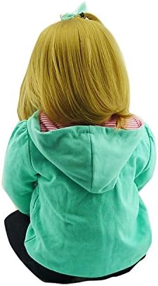 Reborn baby doll Size:18inch(45cm); Weight:about 1.5KG(3.3LB). The doll is handmade,will be some error in the size and weight. Reborn baby Head,arms and legs: Soft Simulation Silicone vinyl; Body:Cloth filled with cotton,very soft. Eyes: High quality Taiwan Acrylic eyes,can not close or blink. Hair: High Quality wig, can wash and dress up. Doll Clothing: Handmade according to the doll size.The doll will come with the clothes.