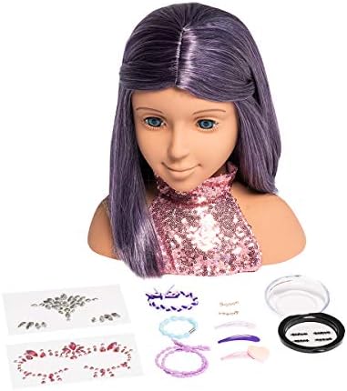 CUT, STYLE, & CHANGE HAIR: Colorful wigs are ready to be cut and styled. The hair is incredibly realistic and soft so it is easy to style. Plus, the hair is interchangeable so you can be creative without fear of permanently messing up. ONGOING FUN: More wigs can be purchased separately so you can keep on cutting and styling as much as you would like. 13 INCHES TALL: This styling head is the perfect size with a very large and realistic surface area so you can easily experiment with makeup designs as well. BECOME A STYLING PRO: There is so much creativity to be had with this styling head that comes with a wig, magnetic lashes, 6 hair accessories, earrings, and 2 face gem sets. HIGH QUALITY: Our wigs are made with high-quality synthetic hair fibre, easy to style and interchange. All of our dolls, accessories, and wigs are made to last so your doll will provide entertainment for a long time.