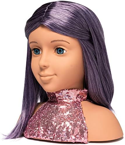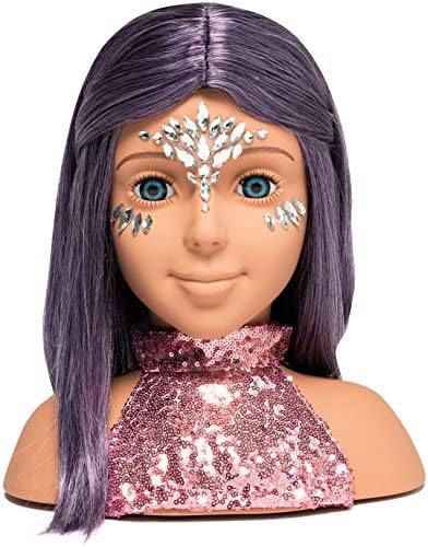 I’M A STYLIST Styling Head Deluxe Lola – Doll Mannequin Head, Interchangeable Wig, Synthetic Fiber Purple Hair Includes Magnetic Lashes, Hair Accessories, Earrings & Face Gems for Kids 8+ Years – 13″