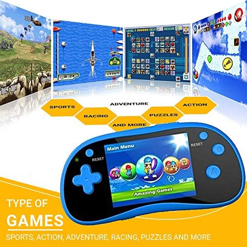 The Game Zone Handheld Game Player provides a fantastic variety of exciting and challenging games for children of all ages. Pre-loaded with 220 Games into one convenient player that fits in your pocket; this is an ideal choice for entertainment on-the-go. The player includes sports, adventure and puzzle games as well as thinking and learning games involving memory, math, and logic. Featuring a built in 19 X High Resolution 3D Sports Games, 3 inch TFT LCD Widescreen with Chrystal Clear Sharp Images, built in speaker, a 3.5mm headphone jack, as well as an AV output (for connection to your TV via AV cable) and running via USB/AC or battery power. Keep your children entertained for hours while working or on the go! Your kids will love the variety of games and never get bored! Endless amount of fun in one handheld arcade game console!! Games include: PUZZLE: Shudu, Move Box, Color Stone, Freecell, Gobang, Mine, Packing Lot, Dogs, Rolling Box, Big Shot Checker, Sea Fight, Build Road, Puzzle Connection, Transmover, Pocket Change, Brain Challenge, Shape Switcher, Maze Of Doors, Super Brick, Panda Labyrinth, Chess, Link Water Pipe, Classic Tangram, Silversphere, Bomb Chain Unlimited, Seven, Move Squares, Puzzle Ball, Button Jumper, Earn Stars, Fill Gad Cylinders, Funny Face, Happy Smile, Pass Maze Road, Return Capsule, Telescope Pole ACTION: Hare Fighter, Jumping Mary, Robot War, West Cowboy, Balloon Boy, Crazy Fighter, Jumping Boy, Rescue Pets, Crossing, Climbing Expert, Jack Adventure, Seize Jewelry, Greedy Girl, Spring Mice, Rope Skipping, Pool Party, Elvish Boy, Star War, Save The Fallen, Hell Marksman, Anti Gravity Robo, Airborne Alien, Gliding Apple Girl, Jumping Ball, Mad Ball, Crazy Tank, Glide Object, Dudu Rush, Earth Shaker, Fly Through Flowers, Full Moon Night, Monkey Brothers……… Just to name a few of the AMAZING preloaded games on Game Zone!