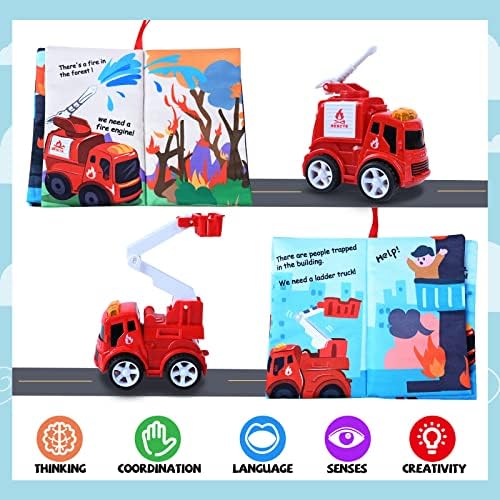 joypath Baby Soft Book Toys, Infant Fabric Cloth Book with Fire Truck Car Toys Set,Crinkle Activity Cloth Books for Babies,Interactive Toddler Toys for Early Development Education