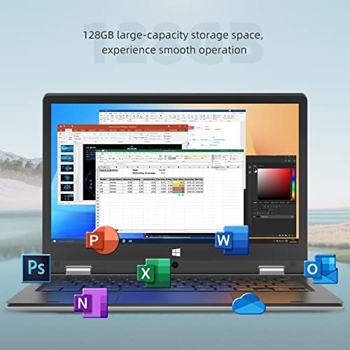 Comes with a 1 year licence of Microsoft office 365 pre-installed, for all your daily computing needs. An ideal laptop for basic home use and kids school work with Word、Excel、PowerPoint、Outlook、OneNote、Publisher、Access. RAM: 4GB LPDDR4 and 128GB ROM high-performance storage, can store enough files, support 256GB TF card.This 2-in-1 laptop combines a keyboard and touchscreen to make it easy to interact with everything on your display. Ultra-thin notebook with aluminum alloy shell, 360-degree design can be used in multiple modes: tablet mode, standing mode, laptop mode, tent mode, providing excellent portability.The weight of the laptop is only 1.18kg, The exquisite and compact body will not become a burden on you. The 10-point, 11.6-inch FHD (1920 x 1080) IPS touchscreen allows the 2-in-1 laptop to be comfortable, fun, and easy to use. It’s also great to look at,offers beautiful visuals, while narrow bezels minimize distractions. Windows 10, Intel Celeron N4020 processor, compatible with various office software and learning software.lets you get work done more efficiently.Enjoy up to 8 hours of battery life, plus quick charge to 80% in just 1 hour,and the standby time is up to 360 hours. One year warranty, if you have any questions, please feel free to contact us.