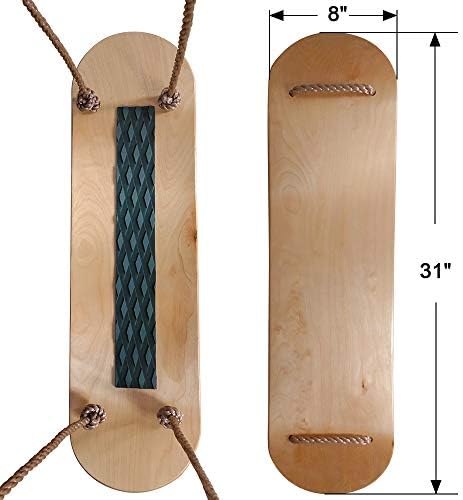 Price: (as of – Details) Skateboard Swing: The swing use the premium imitation wood, more strong and durable.Large skateboard design,your kids could stand or sit on it, keep a comfortable posture4 Pcs load-bearing rope: Anti-UV PP material, special twist rope design,better stretchability and weight capacity, is up to 220llbsDouble Side Safe Handle: Strong handle,could keep