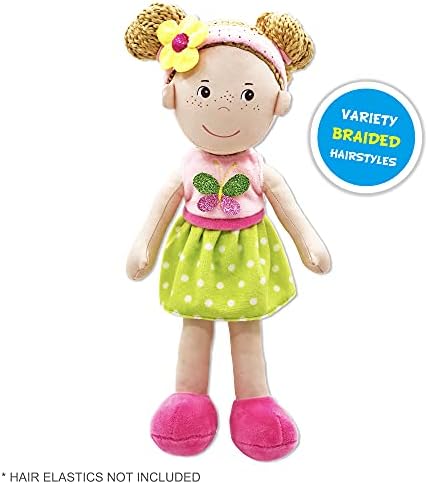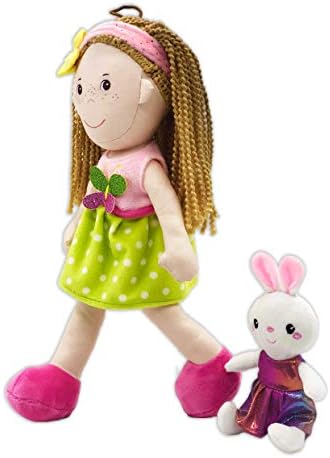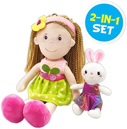 ADORABLE DESIGN: Every kid needs a constant companion throughout early childhood. Playmate Buddies Aubrey measures 14″ tall and is soft and snuggly, destined to be the“go-to”choice for your little child. Aubrey comes with her best companion Trixy, a 6 inch bunny featuring embroidered facial details and a shimmery dress. REMOVABLE OUTFITS: Playmate Buddies Aubrey features a soft dress with a cute butterfly decoration. Her partner Trixy wears a shimmery dress. Both of the outfits are removable and interchangeable. The outfits are machine washable and air-dried. PREMIUM MATERIALS: The cuddly playmate buddies collection dolls are stuffed with high quality soft pp cotton. They are handmade with a variety of premium fabrics and stitched with care and love. Ideal for hugging and cuddling! INSPIRES IMAGINATIVE ROLE-PLAY: Paymate Buddies not only provide kids with a sense of comfort and security, but also help develop their social skills and emotional abilities. Through the actions of touching and hugging, little boys and girls gain precious experience of role-plays throughout early childhood and develop early-stage caregiving skills. Kids are sure to love this doll for years! GREAT GIFT FOR LITTLE KIDS: The plush dolls make the perfect gift for toddlers and preschoolers. Appropriate for ages birth and up. Conveniently sized for travelling. (Outfits are machine washable)