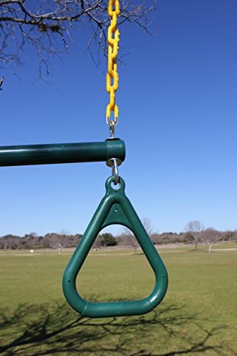 Price: (as of – Details) Product Description KIDS will love this combo addition to their swing set accessory parts. Your children will enjoy the improvement to their outdoor playground playset!FULLY ASSEMBLED swingset trapeze bar with rings and heavier 2/0 43″ chains 20″ plastic coatedINCLUDES Trapeze Bar – green powder-coated, stamped Jungle Gym Kingdom chains and