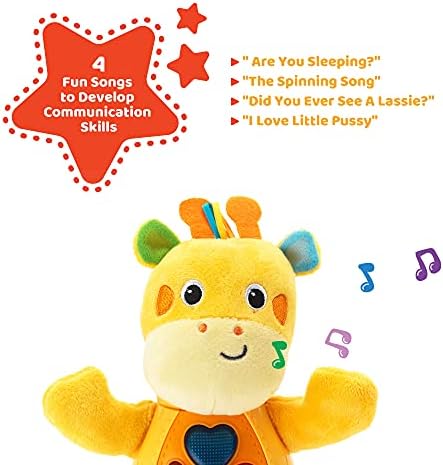 HAVE FUN WHILE LEARNING – Help your kids discover new sounds and nursery rhymes! This giraffe toy can sing Are You Sleeping, The Spinning Song, Did You Ever See a Lassie, and I Love Little Pussy. YOUR CHILD’S BESTFRIEND – Give your little one a music toy they can cuddle and play with all day. This giraffe baby toy comes with soft fillings and a smooth outer fabric that’s gentle against baby skin. A DELIGHT FOR THE SENSES – This adorable baby giraffe toy is equipped with 3 buttons that light up as the toy sings. The lights are mesmerizing and can be used to distract an upset child. SAFE FOR TODDLERS – Crafted using safe and durable plastic, fabric, and electronics, this baby music toy has no parts that could harm your children. Let your toddlers enjoy it without worries. MADE FOR YOUR KIDS – We’re dedicated to providing contemporary parents with modern solutions. Our products are specially designed to be fun and colorful while helping with early childhood learning.