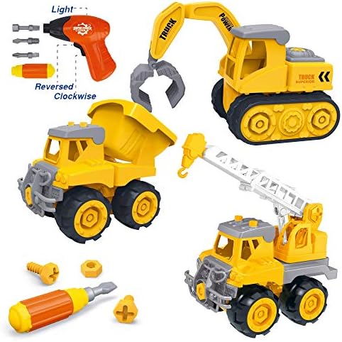 Price: (as of – Details) Product Description Model Cement Mixer Take Apart Truck Dump Truck Take Apart Toy Excavator Take Apart Truck Crane Take Apart Truck Power Drill ✓ ✓ ✓ ✓ Screwdriver & Bits ✓ ✓ ✓ ✓ Plastic Container for Easy Storage ✓ ✓ ✓ ✓ CONSTRUCTION VEHICLES SET WITH ELECTRIC DRILL AND